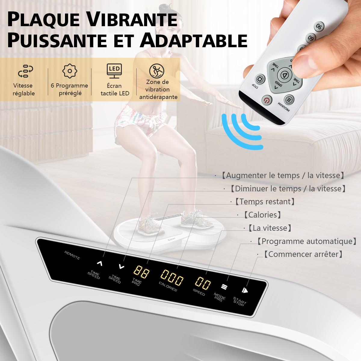 300W Plateformes Vibrantes/Oscillante avec Bandes de Résistance Amovibles et Télécommande pour Exercises à Domicile