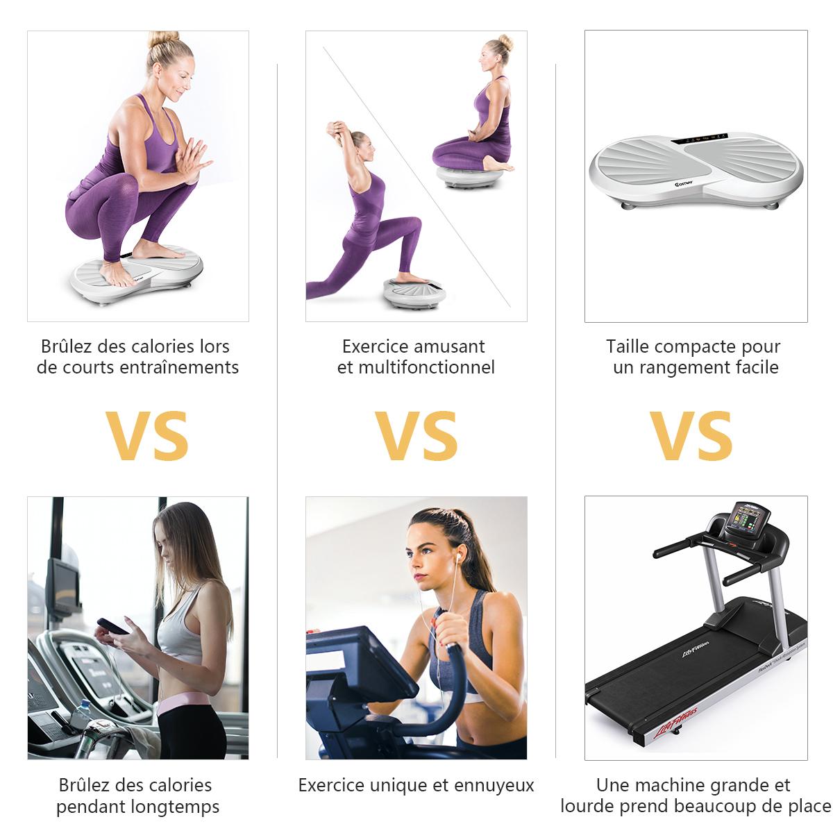 Cet appareil d’exercice offre une nouvelle façon d’entraîner votre corps et il est facile à contrôler. L’affichage LED et la fonction de chronométrage vous évitent des problèmes inutiles, la vitesse peut être réglée par télécommande, pratique et rapide. Les deux cordes élastiques assorties exercent vos bras et le haut du corps. La plateforme d’exercice vibrante peut non seulement être utilisée pour perdre du poids et renforcer votre corps, mais aussi pour améliorer l’équilibre et la coordination et favoriser la circulation sanguine. Sa petite taille rend lafacile à transporter et à ranger.