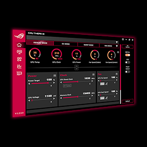 GPU TWEAK IIIASUS GPU Tweak III est plus intuitif et offre plus de fonctionnalités que jamais. Son interface remaniée offre une plus grande accessibilité en intégrant les fonctions principales dans un tableau de bord centralisé, tandis que notre tuner Tension-Fréquence a été revu pour rendre l’overclocking encore plus facile. D’autres éléments comme la technologie de ventilateur 0dB, le changement automatique de profil, l’affichage à l’écran entièrement personnalisable et les capacités d’enregistrement vous permettent de tirer le meilleur parti de votre carte graphique. |