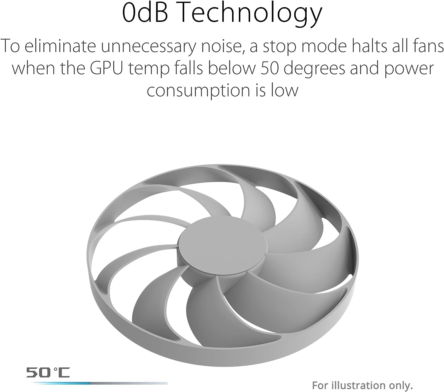 Technologie 0dBPour éliminer les bruits indésirables, le mode Stop met tous les ventilateurs à l’arrêt lorsque les températures du GPU sont en deçà des 50°C et que le système consomme peu d’énergie. |