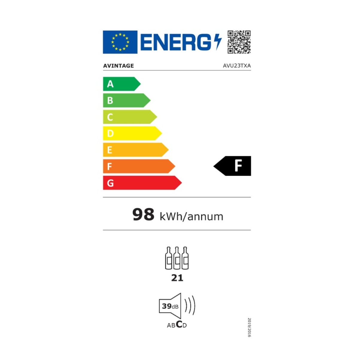 cave à vin de service encastrable 21 bouteilles – AVU23TXA – Cave à vin encastrable AVU23TXA AVINTAGE avec une porte vitrée réversible, triple vitrage en verre trempé traité anti-UV. – Type de produit : Cave à vin intégrable.