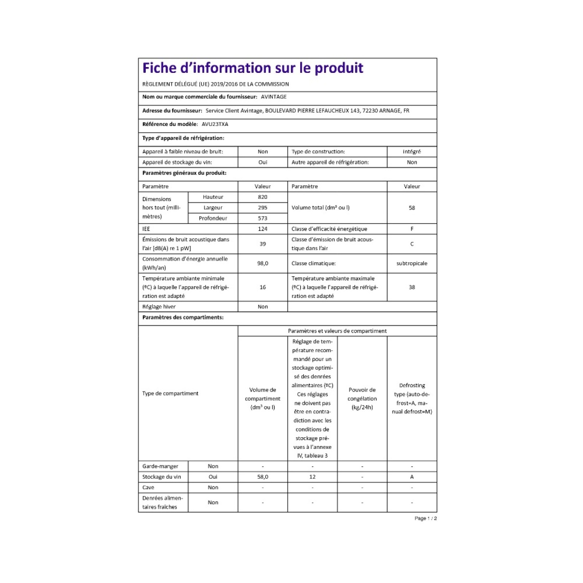 Soyez le premier à laisser votre avis sur “Cave à vin de service encastrable 21 bouteilles – AVU23TXA – AVINTAGE”