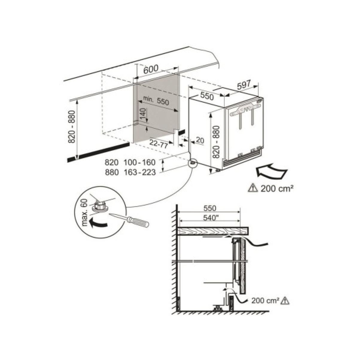 Description – Congélateur – Liebherr – Congélateur encastrable top SUIGN1554-25, No frost, 80 litres, 3 tiroirs