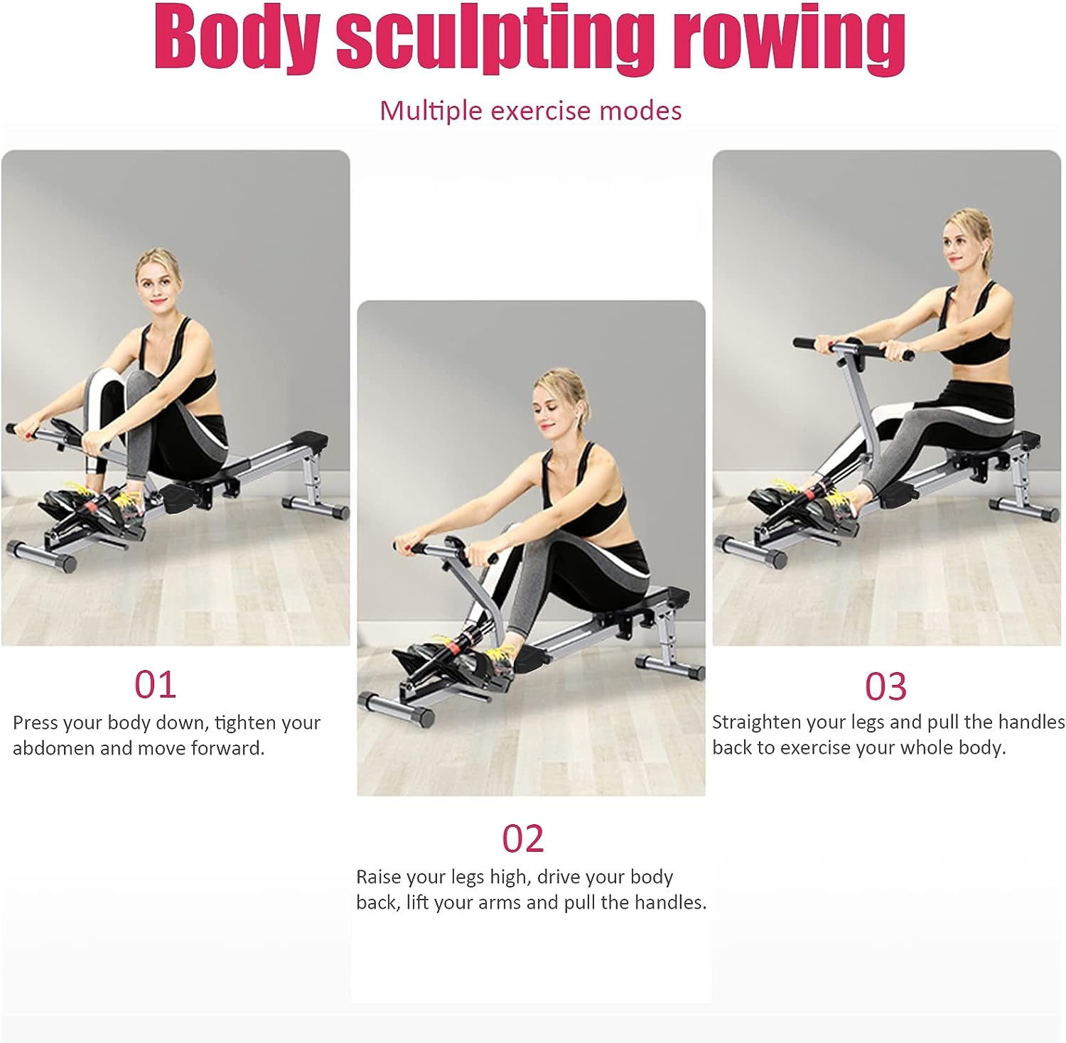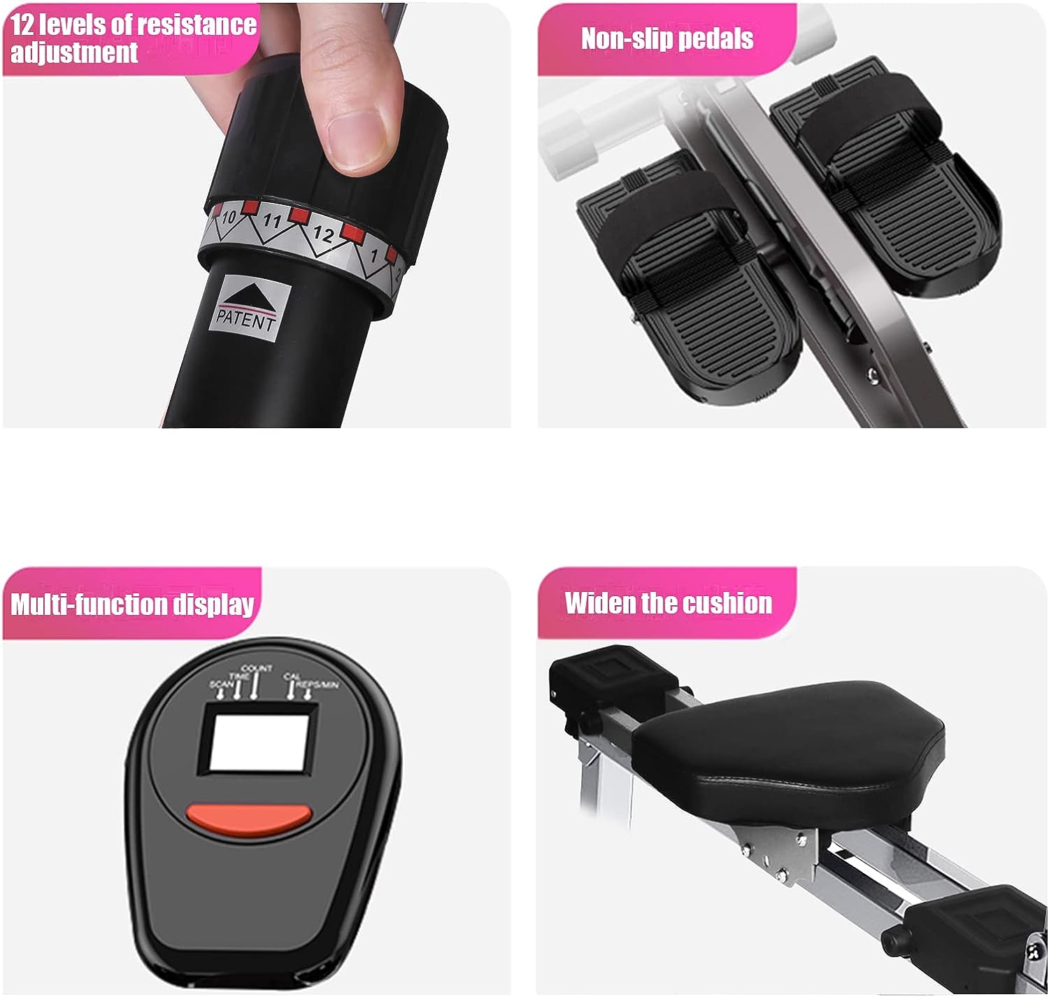 DnKelar Rameur Super Silencieux avec Glissière en Aluminium,Rameur d’Appartement Pliable,résistance à l’air, siège rembourré,Charge 100KG