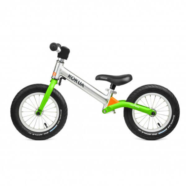 La draisienne sans frein Kokua LIKEaBIKE Jumper bénéficie d’une fabrication remarquable, sur la qualité des matériaux, de l’assemblage et des finitions. Le cadre utilise de l’aluminium 7005 très résistant, avec un tube principal ovale qui favorise la stabilité du petit vélo. Les jantes sont en aluminium et les rayons en acier inoxydables.