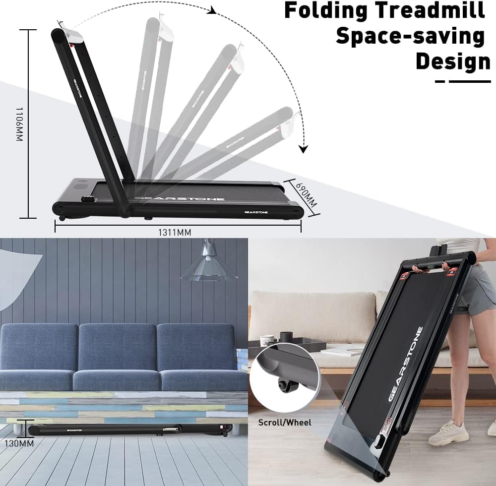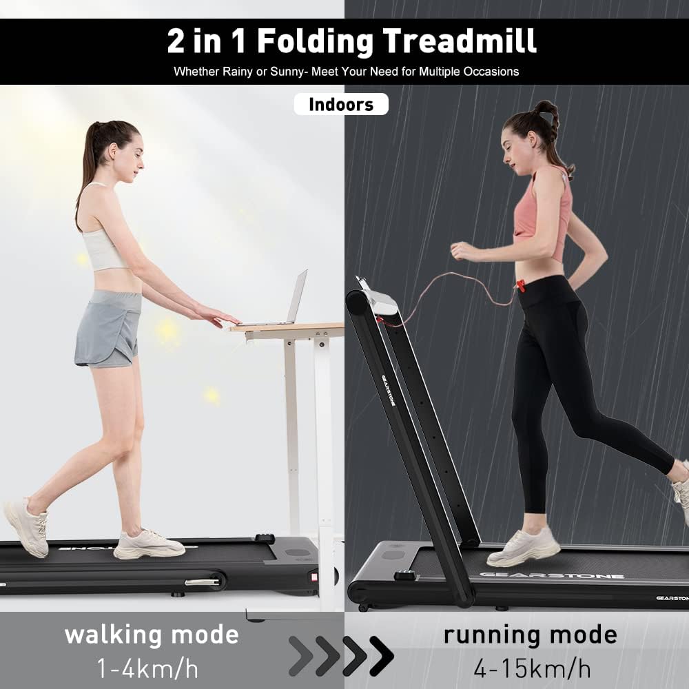 GEARSTONE Tapis de Course électrique 1-15km/h,Tapis de Course Pliable avec Bluetooth,APP et Double Affichage LED,Main Courante et télécommande,pour la Maison et au Bureau Le prix initial était : 337.00€.Le prix actuel est : 299.50€.