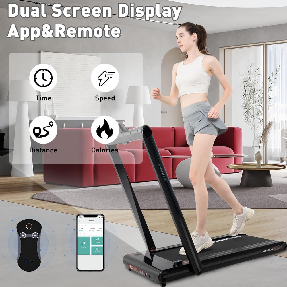 GEARSTONE Tapis de Course électrique 1-15km/h,Tapis de Course Pliable avec Bluetooth,APP et Double Affichage LED,Main Courante et télécommande,pour la Maison et au Bureau