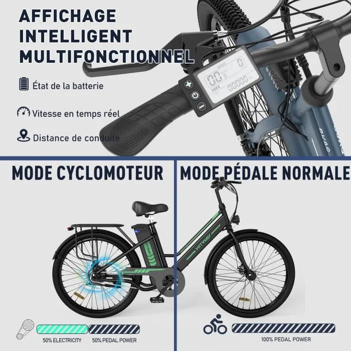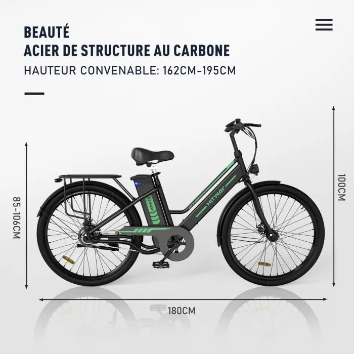Design brillant:Le panneau de commande LCD est facile à utiliser, et vous pouvez voir clairement le kilométrage, la vitesse et la puissance. Ce vélo HITWAY est conçu avec des selles creuses, et la hauteur est réglable, adaptée aux utilisateurs de 162 à 195 cm de hauteur. Les freins à disque mécaniques avant et arrière fournissent une force de freinage fiable par tous les temps, les feux avant et arrière escortent votre conduite en toute sécurité.