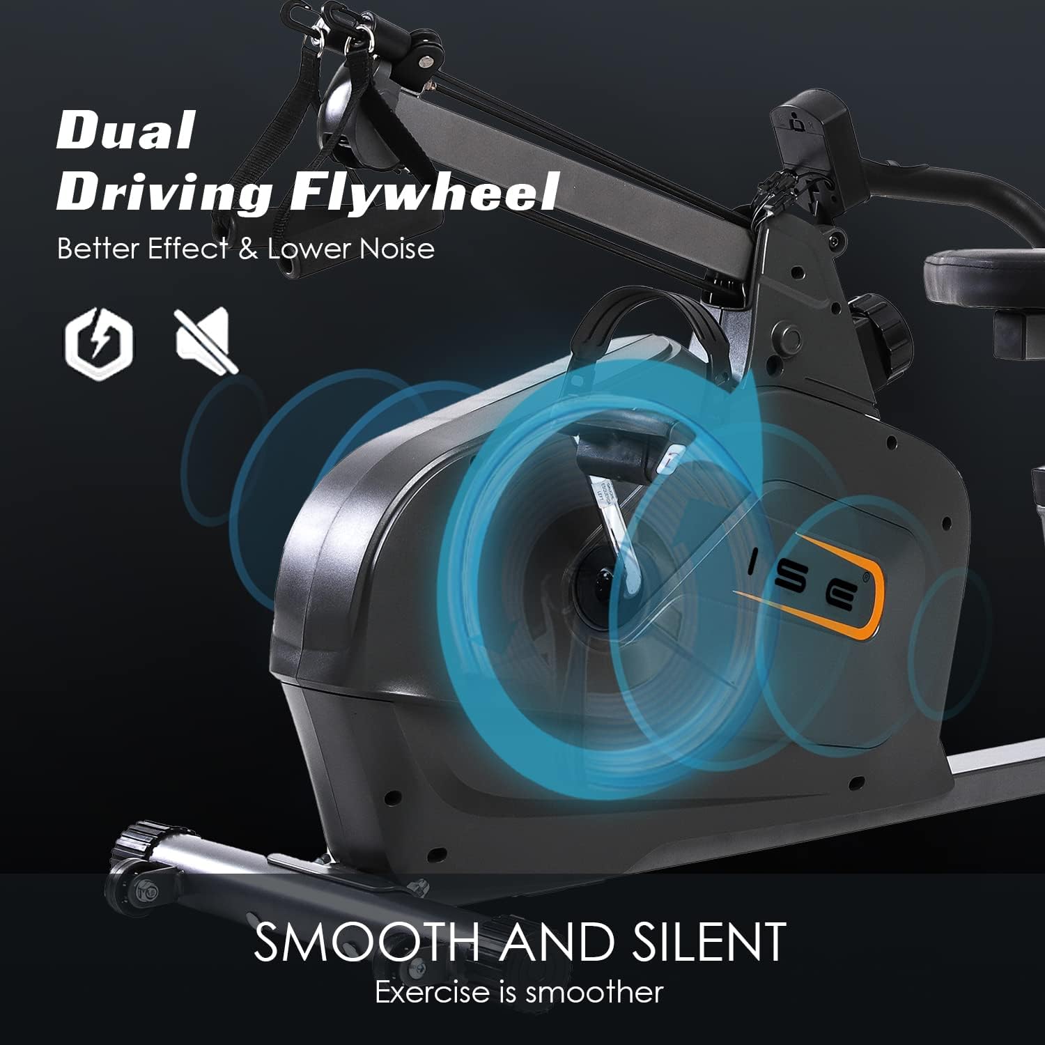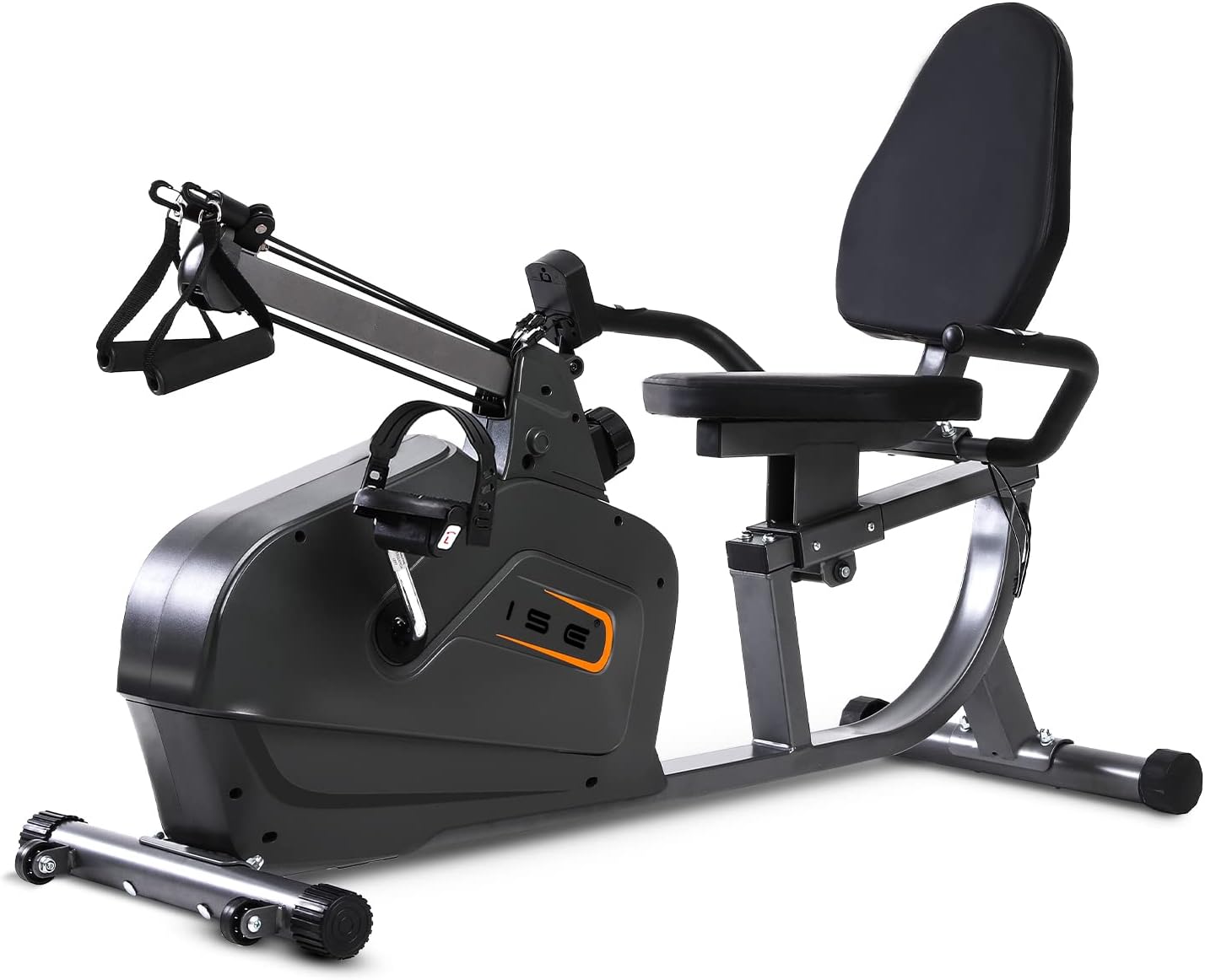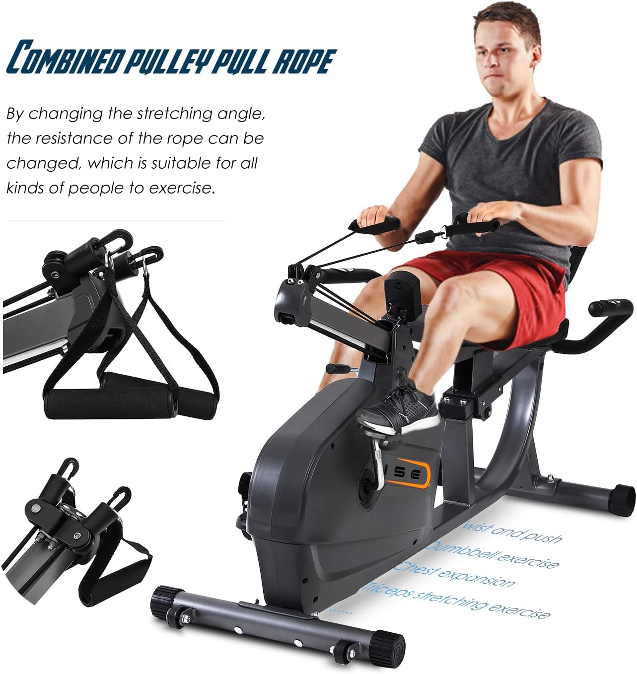 ISE Vélo d’appartement Semi-Allongé Pulse Couché, Résistance magnétique à 8 Niveaux, Siège Réglable avec Dossier et l’Ecran LCD, Corde de traction de poulie, SY-6910 172.99