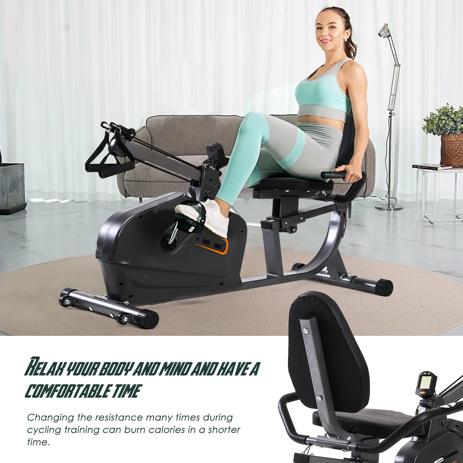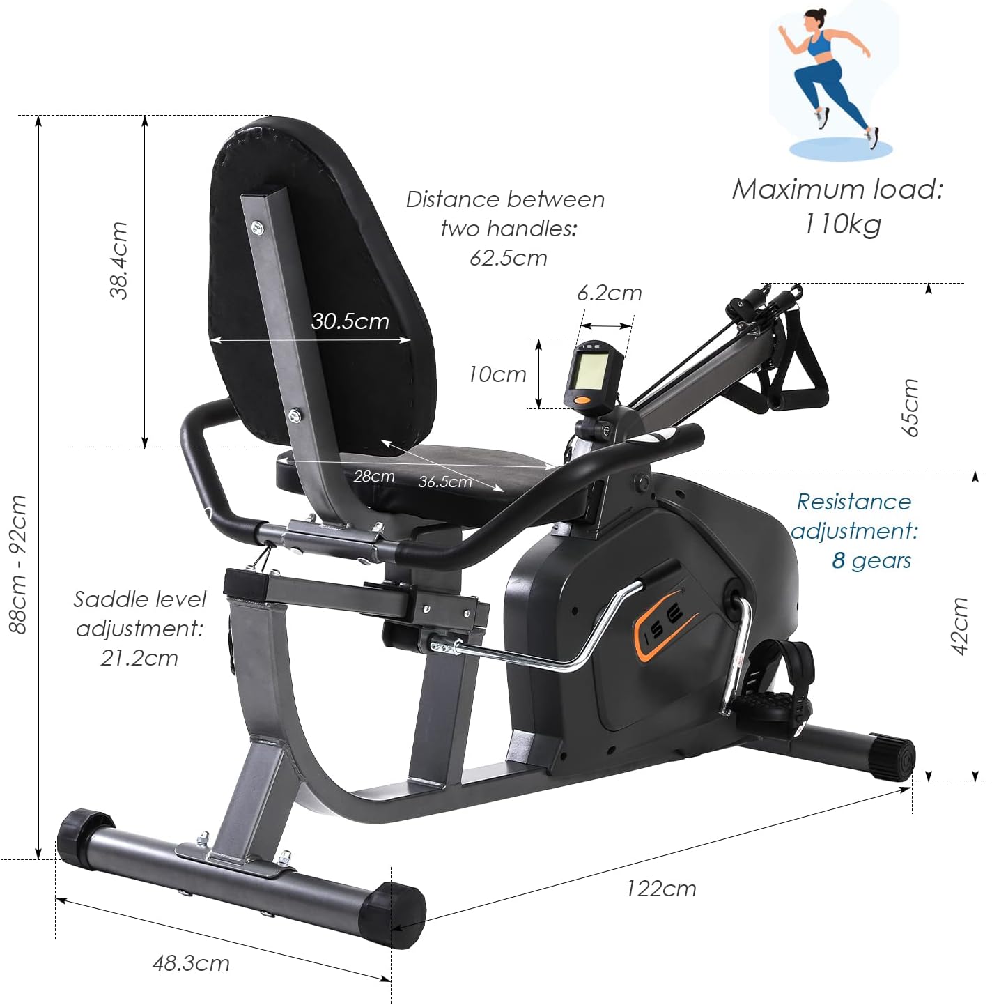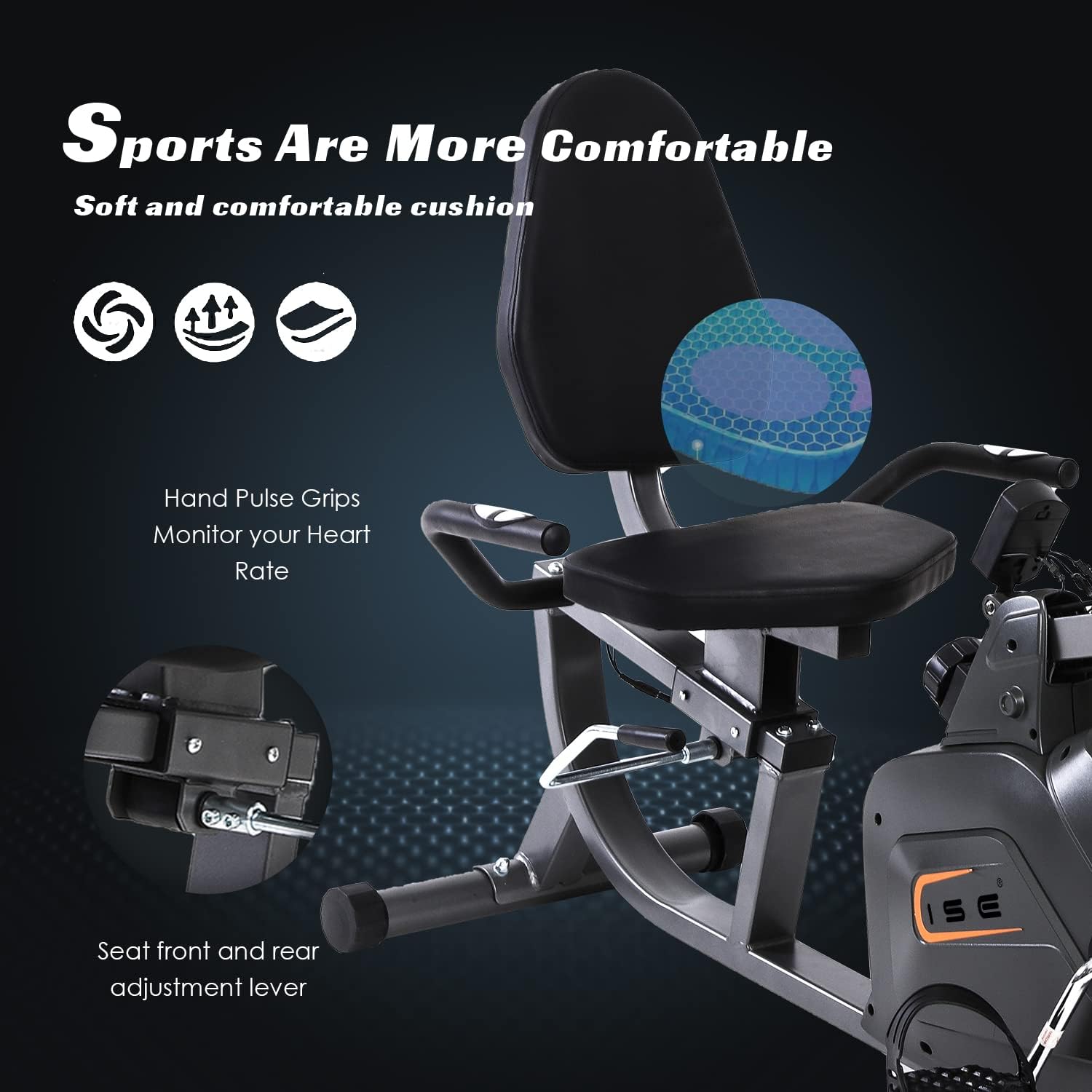 ISE Vélo d’appartement Semi-Allongé Pulse Couché, Résistance magnétique à 8 Niveaux, Siège Réglable avec Dossier et l’Ecran LCD, Corde de traction de poulie, SY-6910 172.99