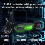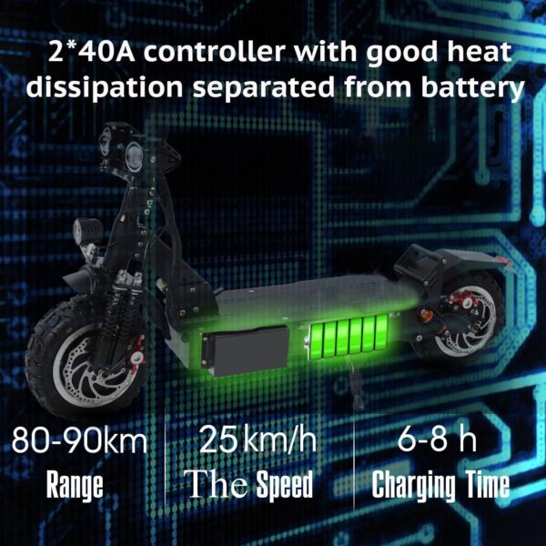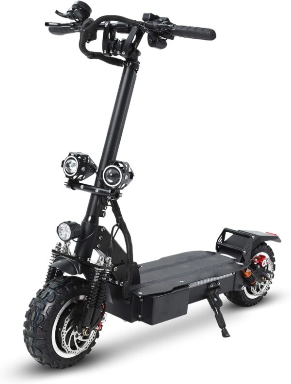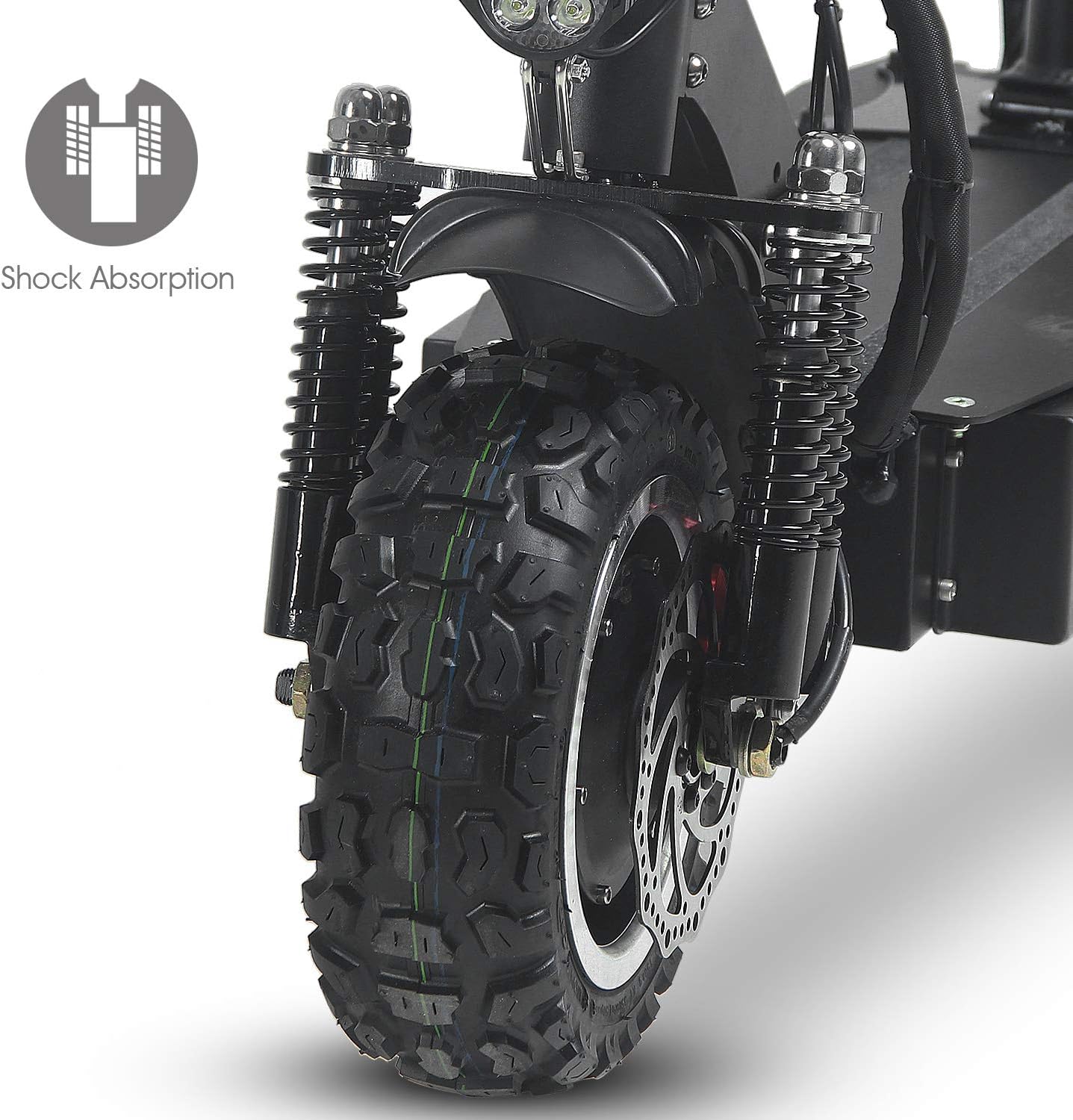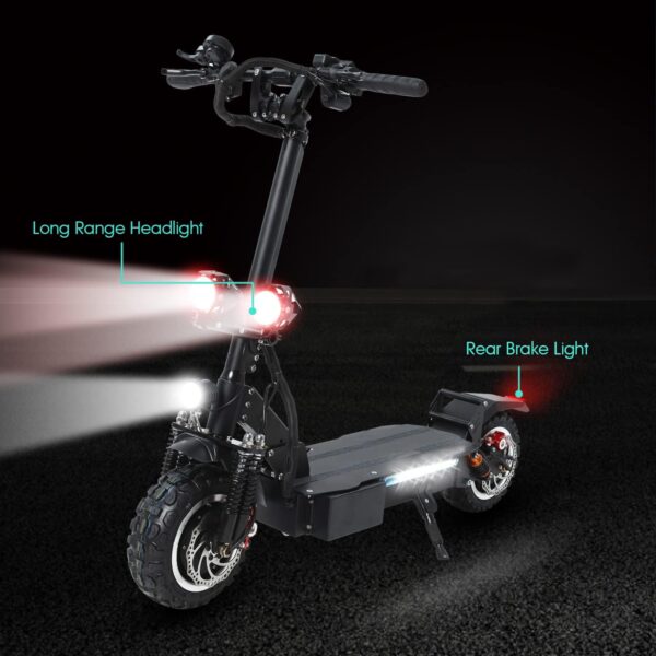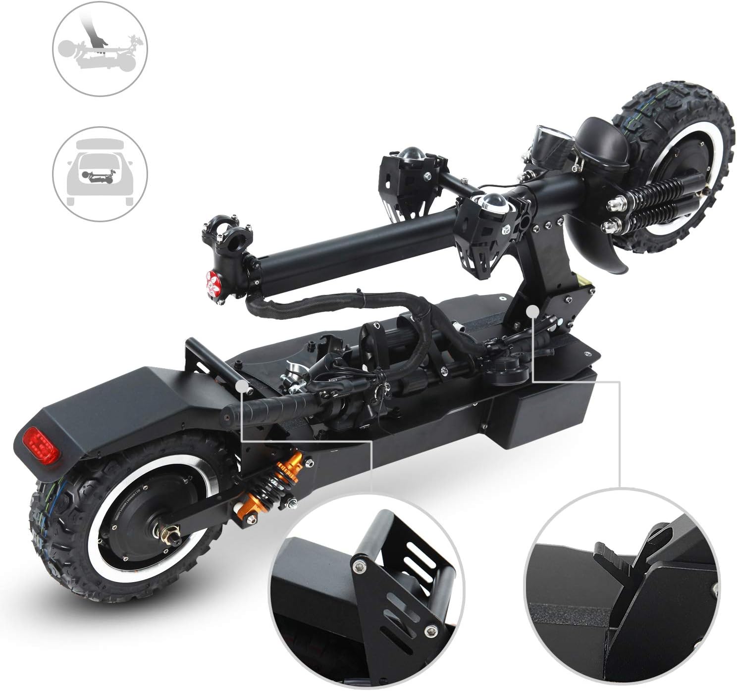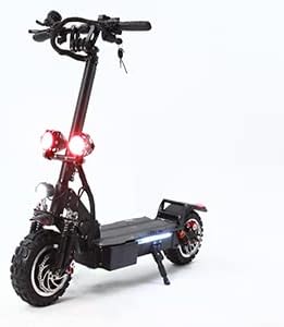 KELKART Scooter électrique avec pneus à vide tout-terrain de 11 pouces à double moteur, scooter pliable à double frein à disque avec batterie au lithium 60V 28AH, avec un éclairage grand angle, la plage d’éclairage est plus large et plus Large.Double dispositif d’amortissement, avec pression hydraulique et haute amortissement élastique du ressort, expérience de conduite confortable, adaptation Conditions routières plus complexes.