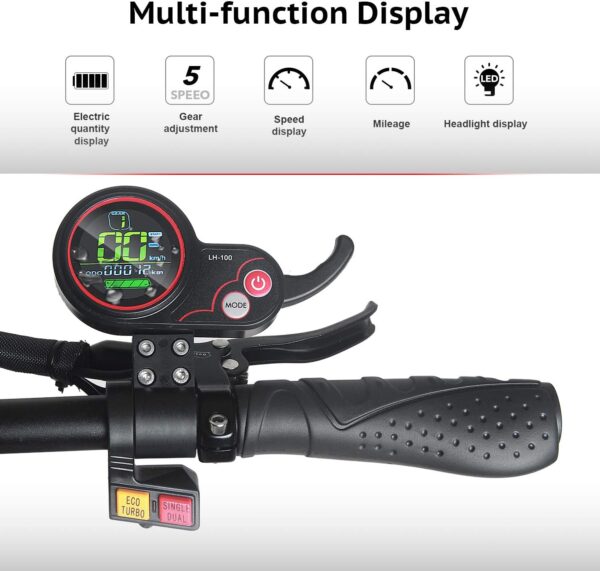 Le guidon est conçu de manière ergonomique pour le rendre plus confortable à tenir.Le compteur vous permet de rester vigilant sur l’affichage de la quantité électrique, le réglage de la vitesse, l’affichage de la vitesse, l’affichage du kilométrage.