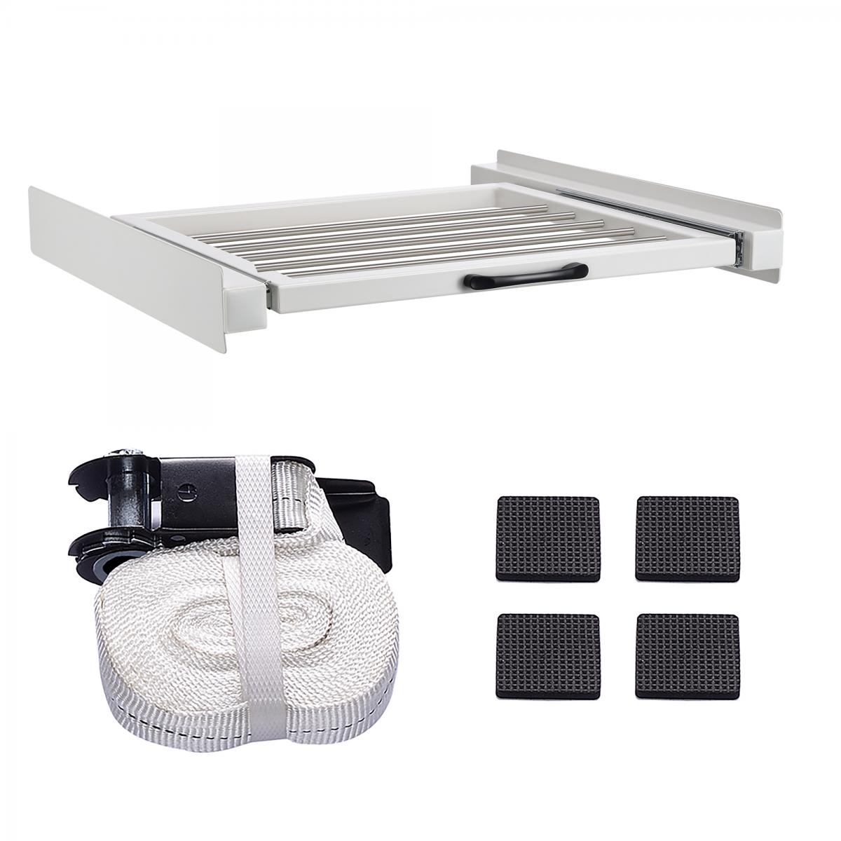 Ce kit de superposition universel vous propose une solution économisant de l’espace. Cet outil pratique vous permet d’empiler deux lave-linge et/ou sèche-linge de taille standard (60 cm de largeur). La stabilité du cadre est renforcée par les plaquettes antidérapantes et le sangle de serrage avec tendeur à cliquet.