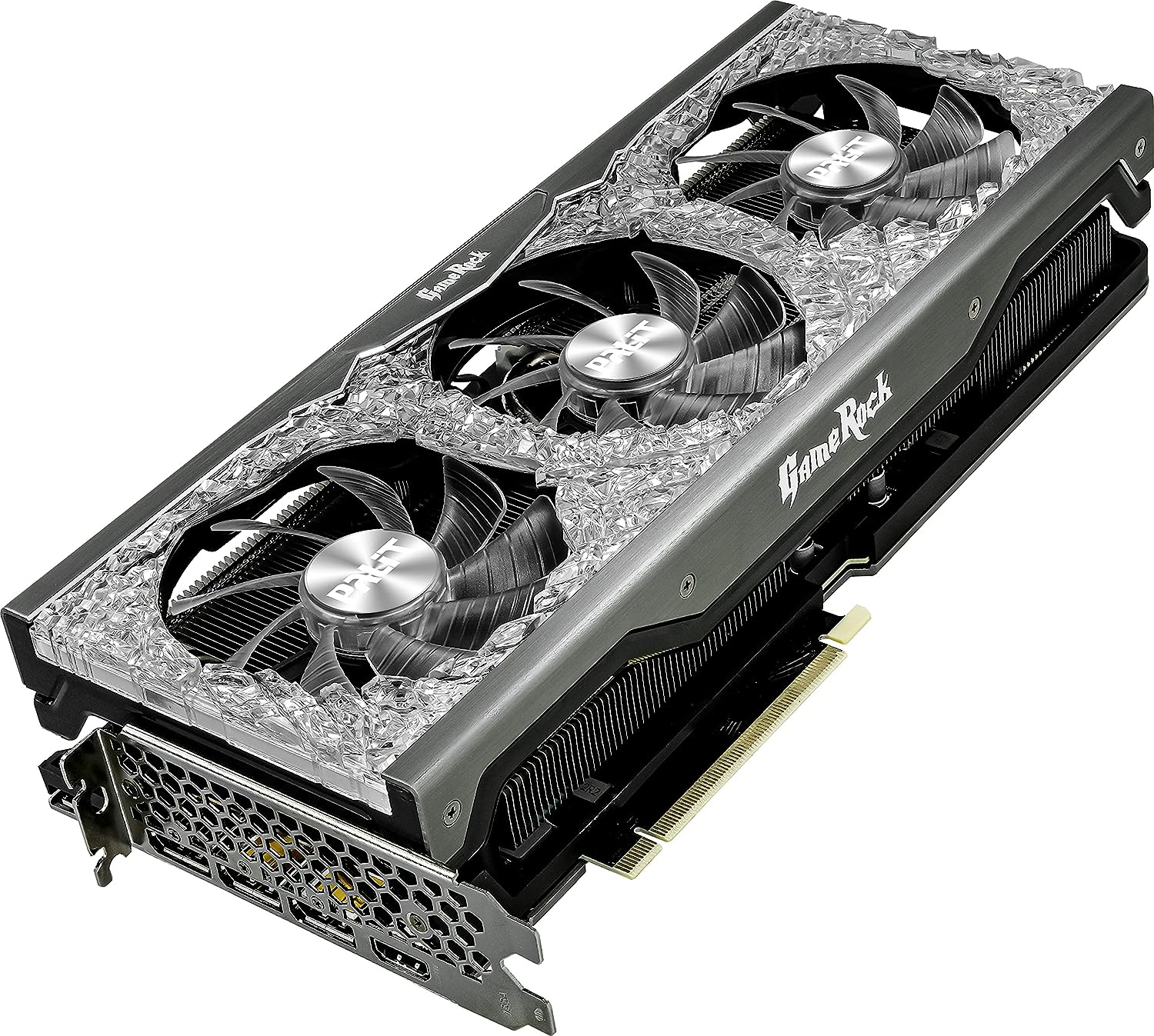 Ange ARVB. Les coupes cristallines du refroidisseur GameRock vous apportent un splendide éclairage d’ange. SYNCHRONISATION ARVB. GameRock vous permet de synchroniser l’éclairage avec tous vos autres appareils PC prenant en charge ARGB. . Kit de plaques de moulage sous pression triple A. Deux plaques « Aluminum Alloy Armor » moulées sous pression recouvrent entièrement le circuit imprimé et se fixent directement à tous les points chauds du PCB. TECHNOLOGIE 0 dB. Restez silencieux tout en découvrant l’application multimédia et la charge de travail générale. DrMOS. Cartes graphiques Palit. DrMOS offre des circuits à courant élevé, un fonctionnement à faible bruit et une réduction efficace de la génération de chaleur. Dissipateur thermique en relief. L’ailette est moulée avec des reliefs pour agrandir la zone de contact avec l’air pour une dissipation thermique plus efficace.