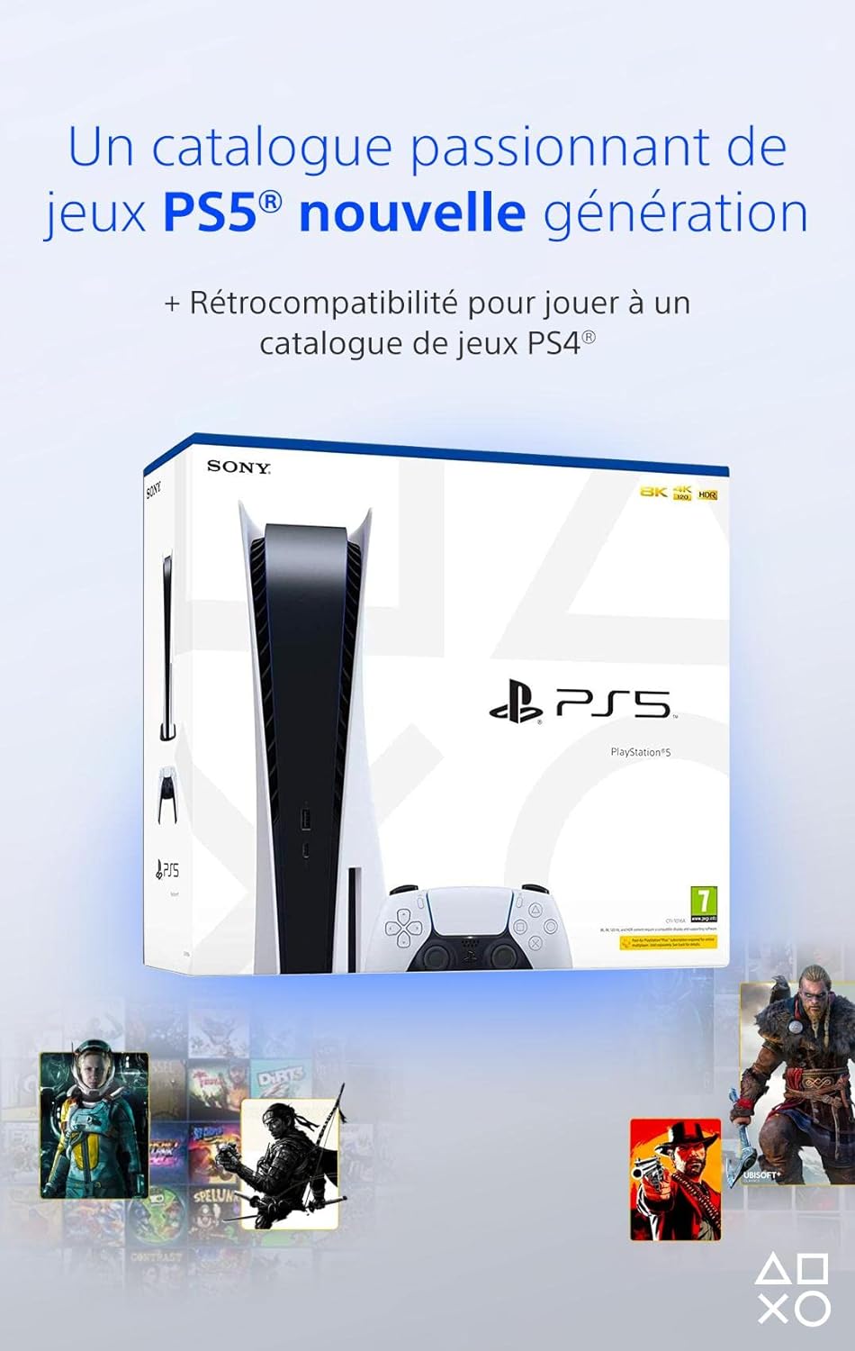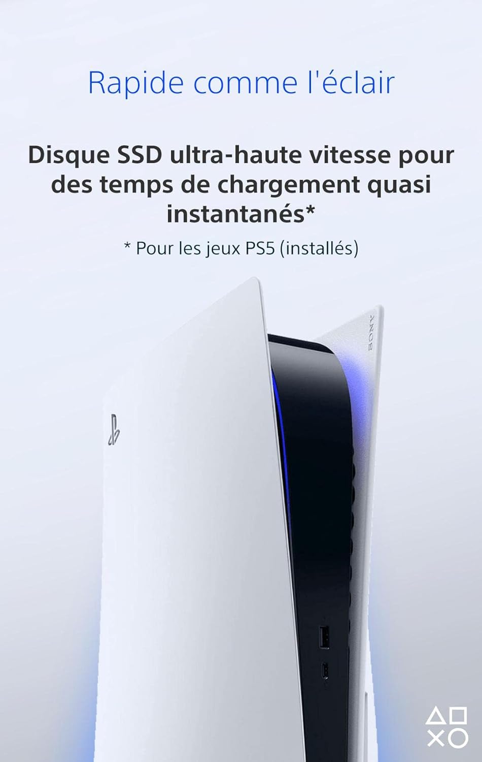 Rapide comme l’éclair, la PlayStation 5 fait tomber les barrières entre le virtuel et la réalité et vous embarque dans une toute nouvelle ère du jeu vidéo. Découvrez les temps de chargement extrêmement rapides offerts par un disque SSD ultra haute vitesse et faites l’expérience d’une incroyable immersion sensorielle grâce au retour haptique, aux gâchettes adaptatives et au son 3D. PlayStation 5, c’est aussi un catalogue passionnant de jeux PlayStation (non inclus) et une interface utilisateur réinventée pour un maximum d’instantanéité. Une toute nouvelle manière de jouer vous attend