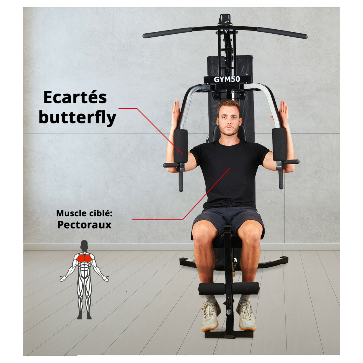 • Poste butterfly à double prise pour localiser efficacement et d’une manière le travail des muscles pectoraux
