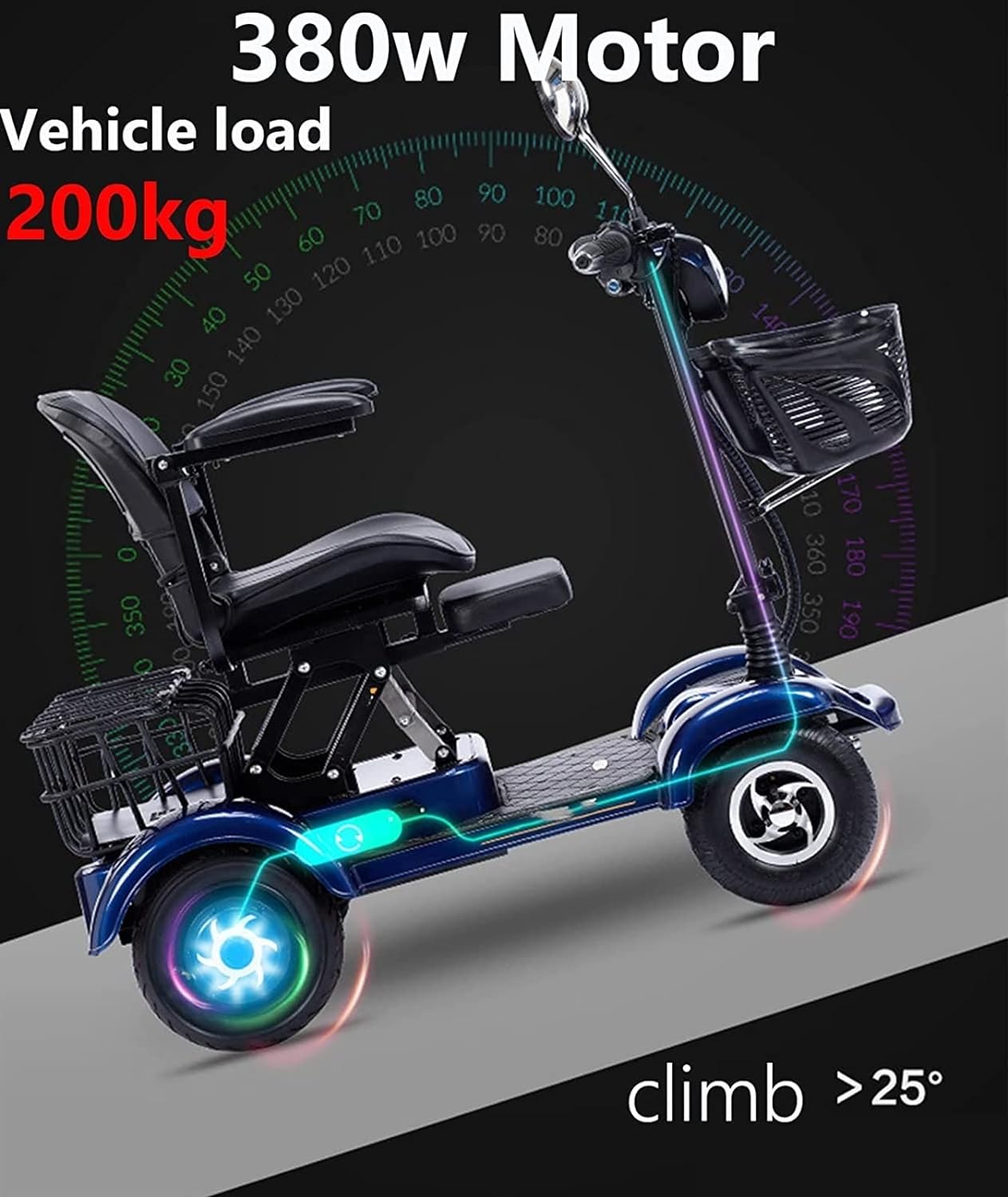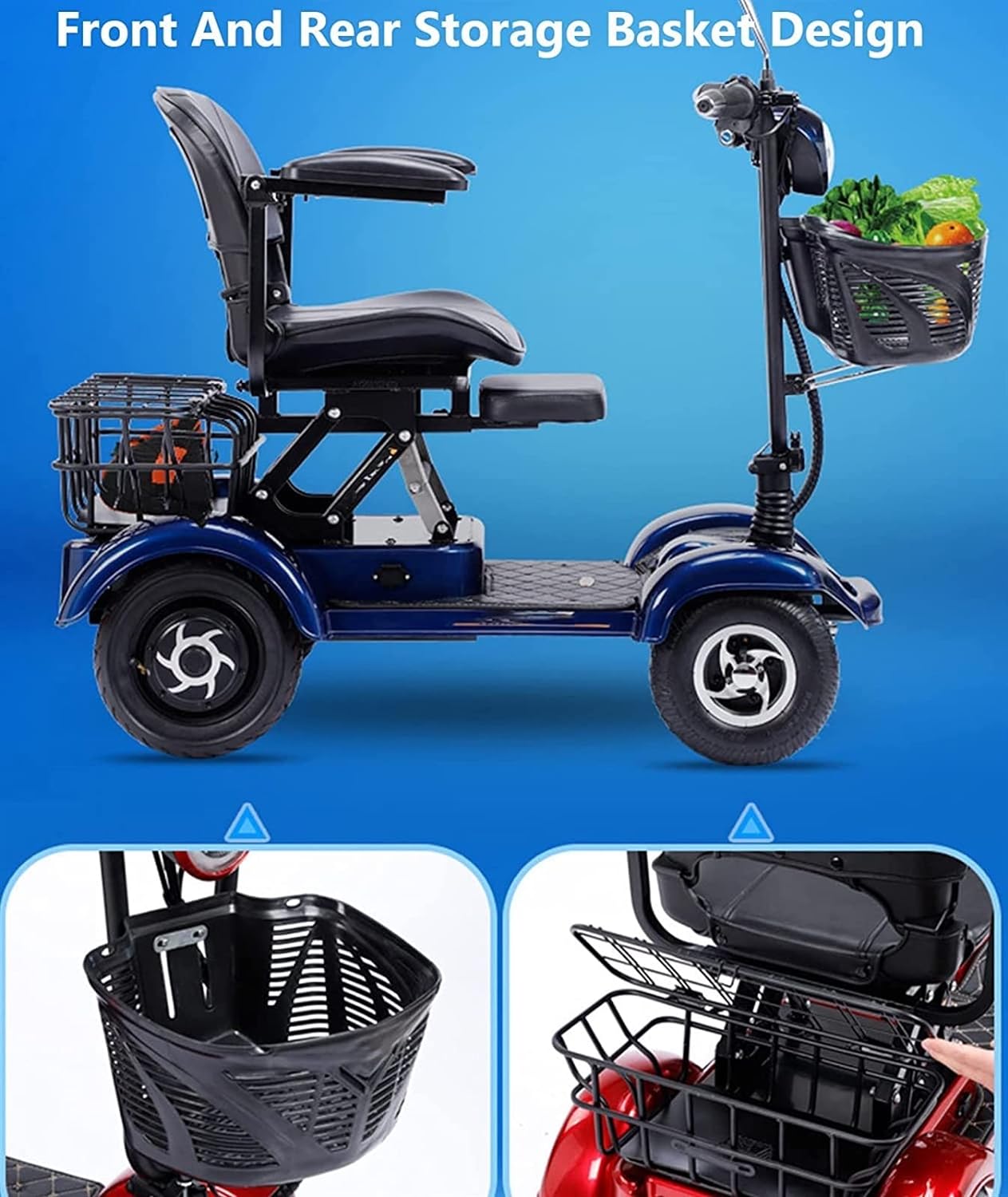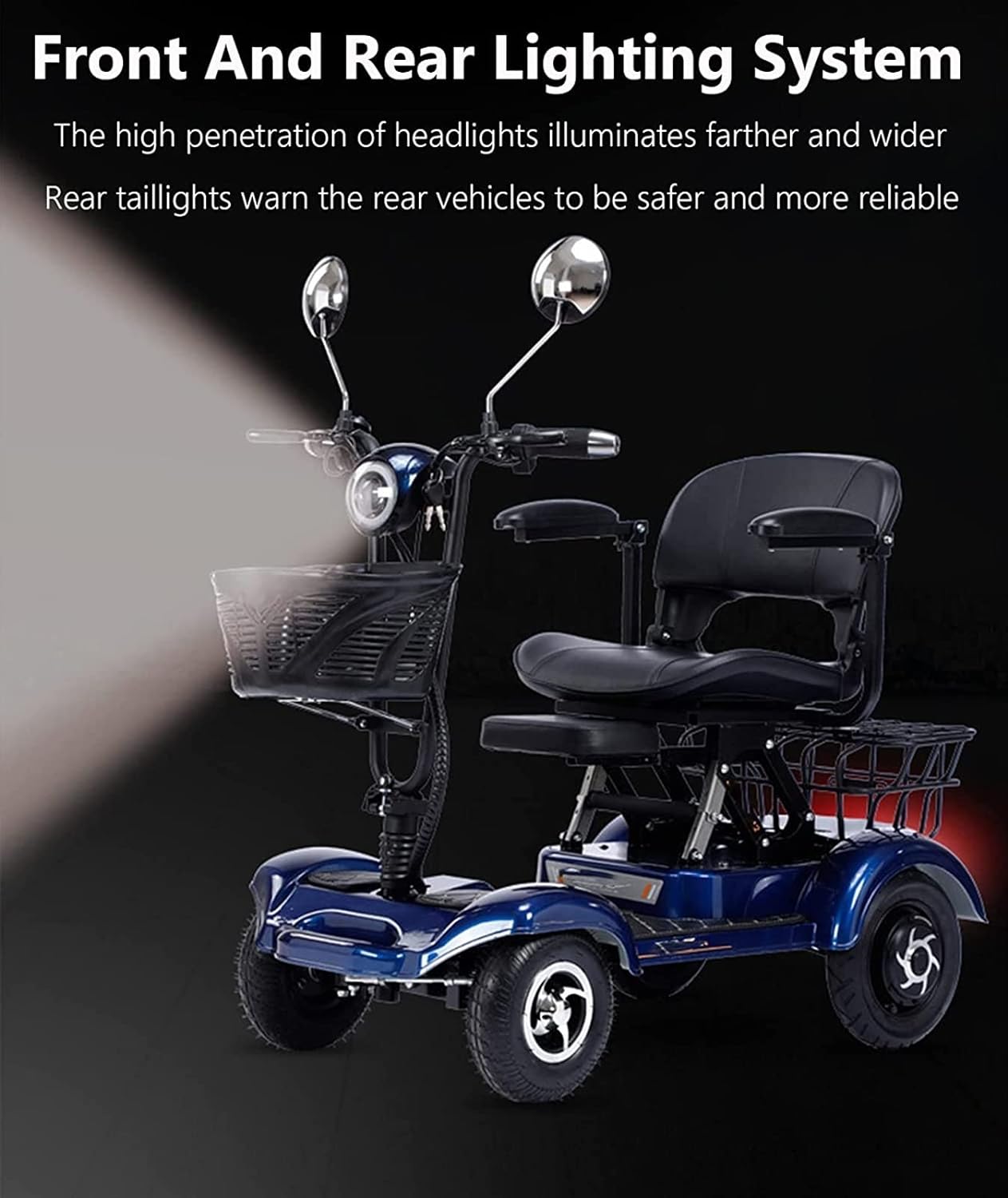 Scooter de mobilité à 4 roues 2 places 380 W Scooters de mobilité robustes for personnes âgées et adultes Capacité de 200 kg 48 V 20 Ah Scooter de mobilité pliable portable for personnes âgées – Éclai
