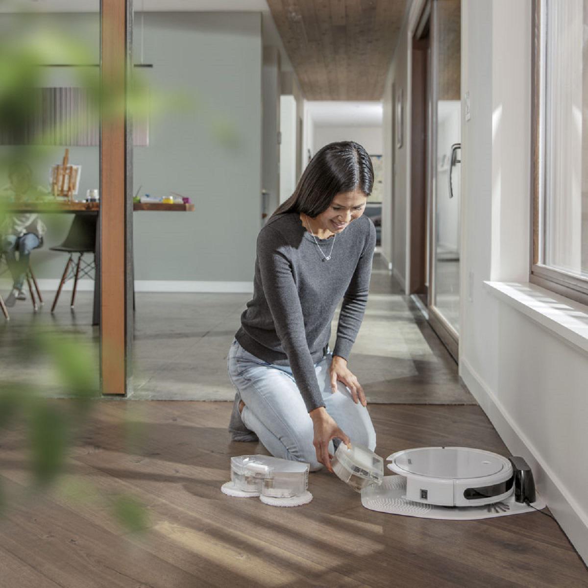 Le robot BISSELL SpinWave est un véritable nettoyeur polyvalent car il combine deux fonctions en une : une fois le bac sec allumé, le robot fournira jusqu’à 130 minutes d’aspiration puissante. La brosse cylindrique rotative, la puissance d’aspiration de 1 500 Pa et les poils latéraux assurent un nettoyage efficace sur différents types de sols, des tapis et moquettes aux carrelages, stratifiés, bois, etc. Pour un nettoyage plus approfondi de vos sols durs, remplacez simplement le bac de poussière sèche par un bac de nettoyage humide avec les lingettes rotatives qui y sont attachées. Le robot lavera ensuite vos sols durs à l’aide du mouvement des lingettes et de la solution de nettoyage exclusive BISSELL®. La bonne quantité de solution de nettoyage est appliquée sur les lingettes et non directement sur le sol, il n’y a donc aucun risque d’appliquer trop de liquide sur des sols délicats. La contrainte du nettoyage avec une serpillière et un seau est maintenant finie. Le Robot BISSELL® SpinWave est équipé d’une navigation gyroscopique, assurant des modes de nettoyage intelligents et structurés sur tous vos sols. Traite la saleté persistante plusieurs fois en mode Spot, détecte et évite les moquettes et tapis en mode nettoyage humide. Avec l’aide de l’application BISSELL® Connect, vous pouvez planifier et contrôler votre robot et personnaliser votre expérience de nettoyage en choisissant différents modes de nettoyage et un des trois débits (faible, moyen, élevé) pour répondre à vos besoins en termes de sols et de nettoyage. L’application mobile BISSELL est disponible en France, Allemagne, Italie Espagne et Portugal.Le robot lavera ensuite vos sols durs à l’aide du mouvement des lingettes et de la solution de nettoyage exclusive BISSELL®. La bonne quantité de solution de nettoyage est appliquée sur les lingettes et non directement sur le sol, il n’y a donc aucun risque d’appliquer trop de liquide sur des sols délicats. Vous pouvez nettoyer plus de 55 m² avec un seul réservoir d’eau. La contrainte du nettoyage avec une serpillière et un seau est maintenant finie.