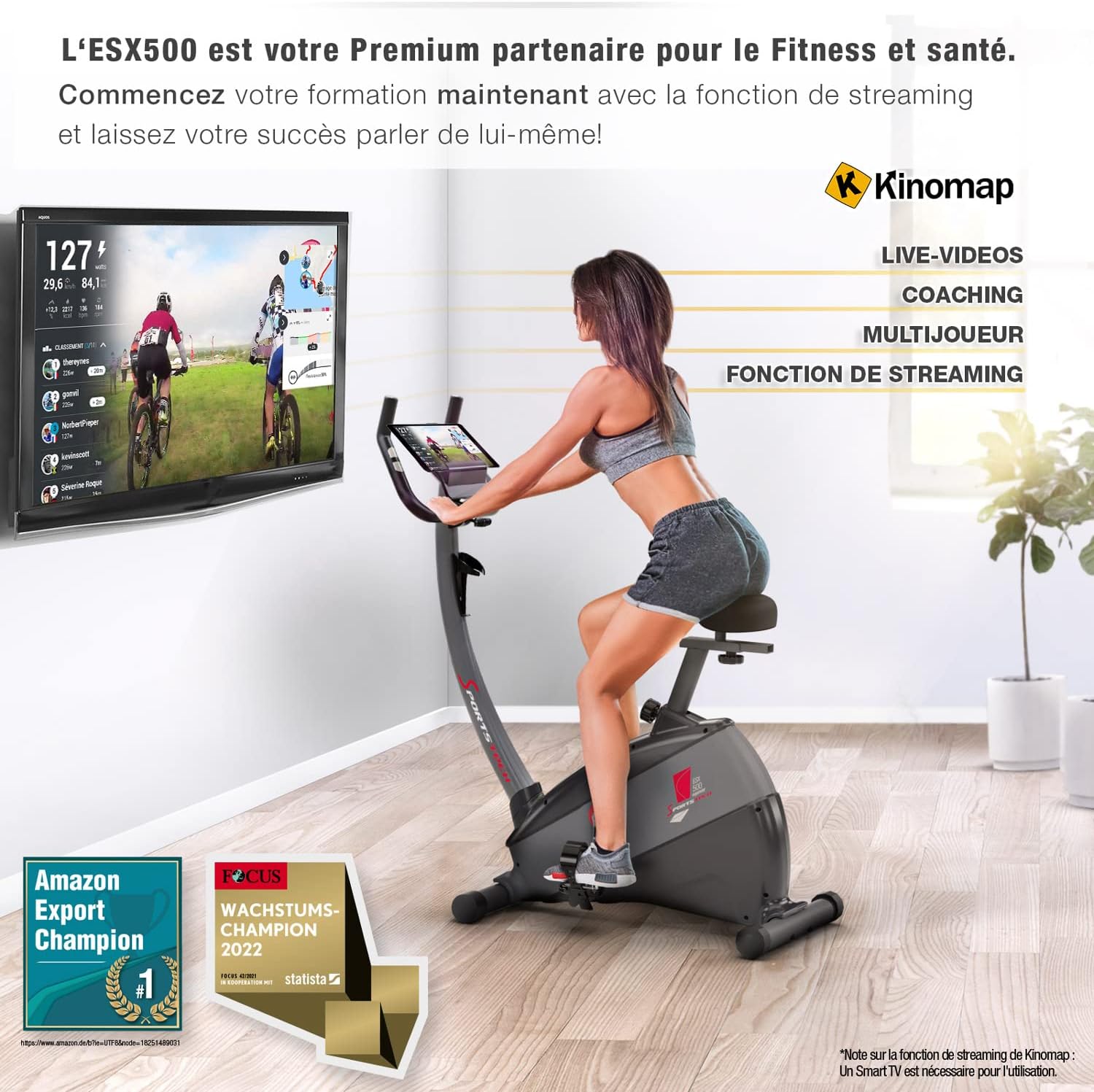 *Note sur la fonction de streaming de Kinomap : une Smart-TV est nécessaire pour l’utiliser.