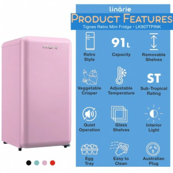 Points forts LINARIE Tignes Réfrigérateur table top vintage Linarie LK90TTPINK 91L Rose