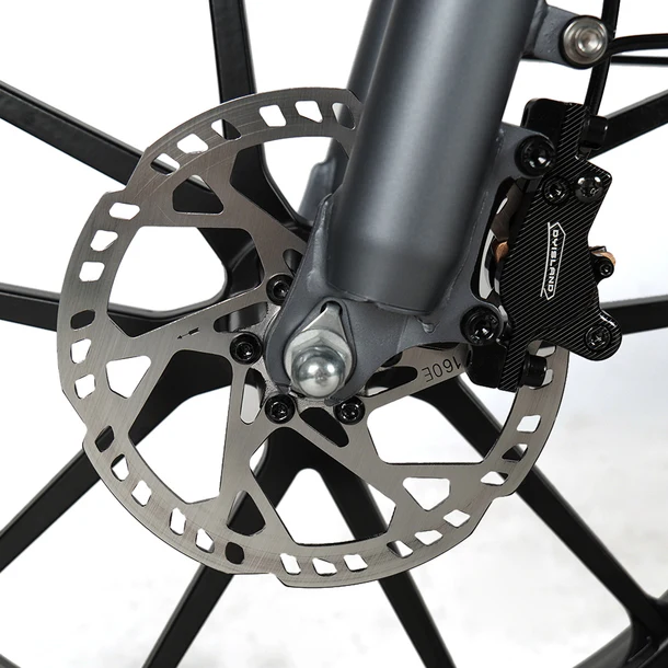 Les freins à disque à huile hydraulique KTET assurent la sécurité lors de la conduite. Vous pouvez arrêter le vélo sur une très courte distance.