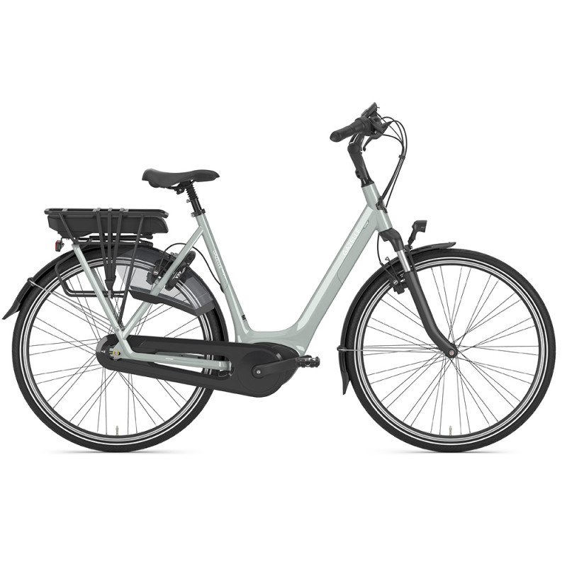 Le confort de ce vélo passe aussi par sa fonctionnalité, son côté pratique au quotidien. Les garde-boue forment une protection efficace sous la pluie. Le porte-bagages arrière dispose du système de fixation MIK pour votre sacoche Basil. Pour la sécurité, on trouve les indispensables éclairages vélo, avec un phare Busch & Müller et un feu arrière Spanninga. La béquille et l'antivol de cadre sont aussi fournis.