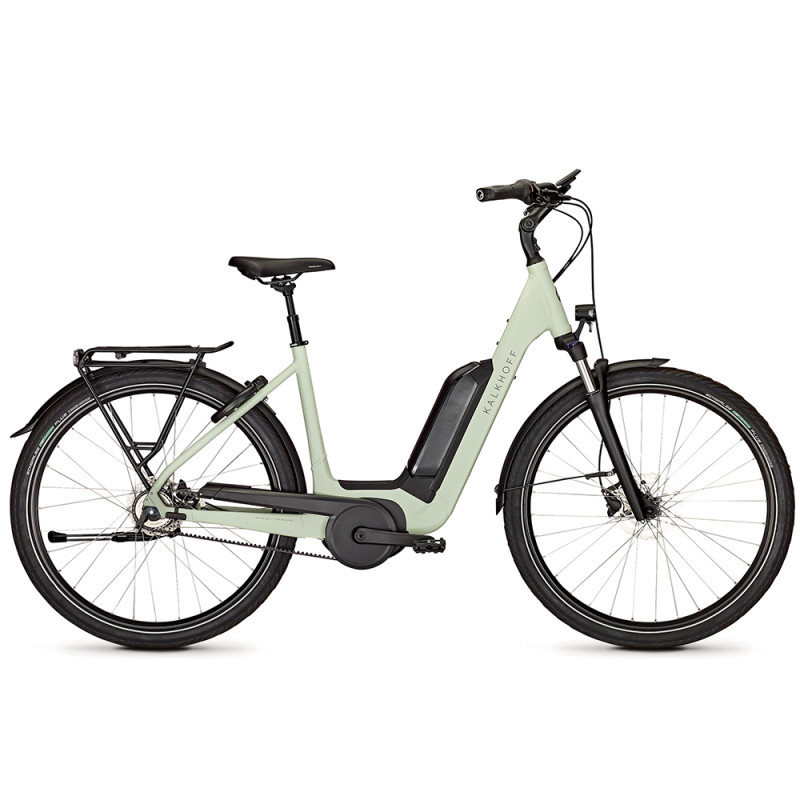 On retrouve ici le cadre E-Comfort commun à tous les modèles de la série Image 1. C'est la plateforme de cadre Kalkhoff de base, caractérisée par un design ouvert qui permet d'enfourcher le vélo le plus simplement du monde. Ce seuil d'enjambement est particulièrement bas et large - la batterie (positionnée sur le tube diagonal) n'entrave pas le mouvement des jambes.