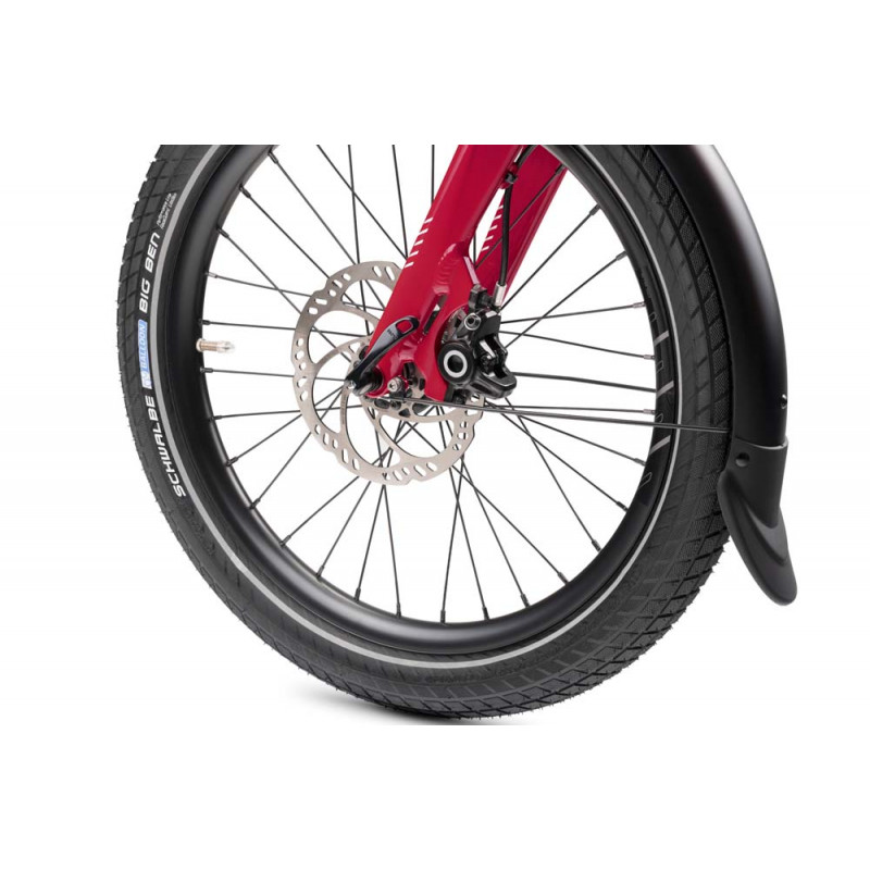 Le Tern NBD S5i présente un équipement complet et super qualitatif. Côté confort, vous pouvez aborder sans problème les rues pavées avec le soutien de la tige de selle à ressort pneumatique, dont vous pouvez ajuster la sensibilité. Les larges pneus « ballons » Schwalbe Big Apple ont un toucher de route souple et confortable, comme des coussins d’air qui évitent de répercuter les vibrations sur les surfaces difficiles.